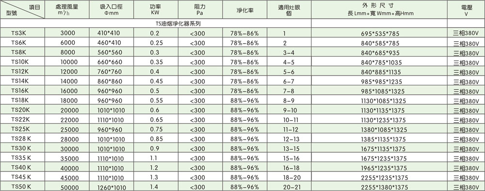 TS系列油烟净化器,内部装有独特的油类吸附单元,油烟经过净化器时,在高压等离子电场作用下,将微小的油颗粒与气体进行荷电离,带电的微小离子(油颗粒)被吸附单元所收集,烟尘里的有害气体被电场内所产生的臭氧杀菌,去除异味,有害气体被除掉,经国家环保局认定的监测部门检测,油烟去除率达到78%-96%,洁净空气经出风口达标排放。