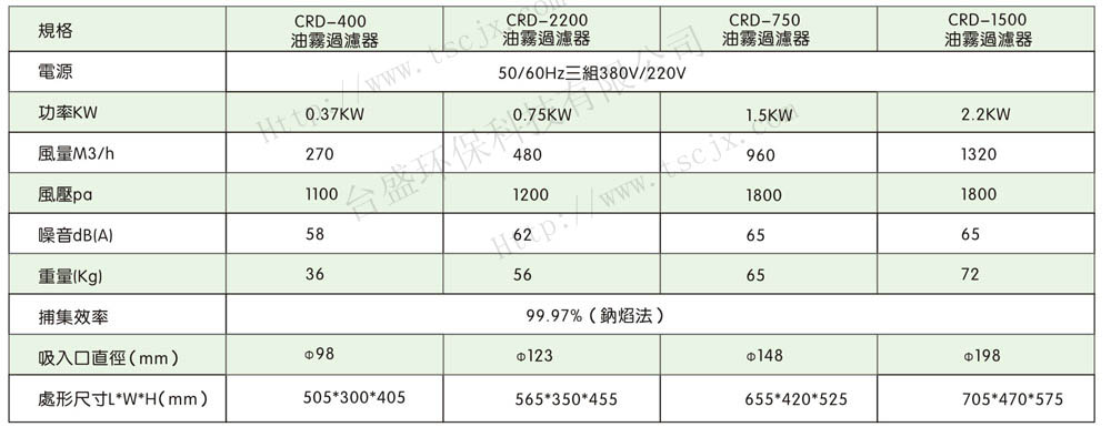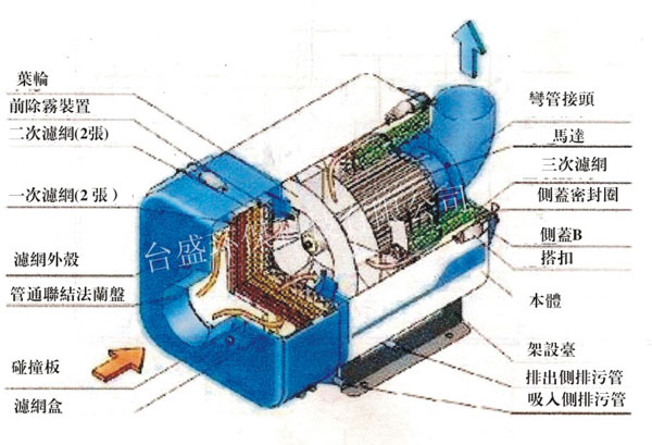 TS系列机床油雾清洁器运用离心分离及高效过滤技术,油雾废气在引风机的作用下进入机床油雾清洁器,首先经匀风器匀风,进入第一级过滤装置,去除20μm以上的油雾颗粒,之后进入离心分离系统,在高速旋转的叶轮作用下,产生强大的离心力,使3μm以上的油雾颗粒从废气中分离并回流到积油盘中,最后进入高效过滤器,滤掉0.3μm级的油雾小颗粒。经过TS系列油雾烟气过滤器处理后,油雾烟气能有效地被捕抓收集,收集效率高,是目前油雾废气处理回收较为理想的设备。